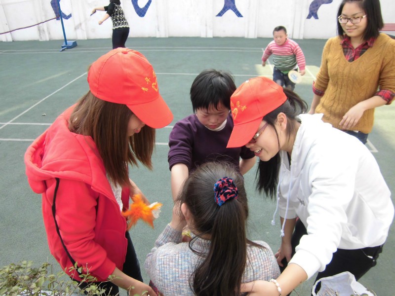 在志愿者们的带动下,孩子们也逐渐放开,和大家一起玩起了老鹰捉小鸡、踢足球等游戏,现场一名老师说:“谢谢你们耐心的陪他们玩游戏,孩子们需要更多关爱,希望像你们这些有爱心的人越来越多,能够陪着这些永葆童心的孩子们。”志愿者程伦同学这样描述此次活动:“在我看来此次活动就像是陪天使们玩耍,他们可爱、纯真、不谙世事,我希望能够为这些可爱的孩子尽我自己的绵薄之力。”