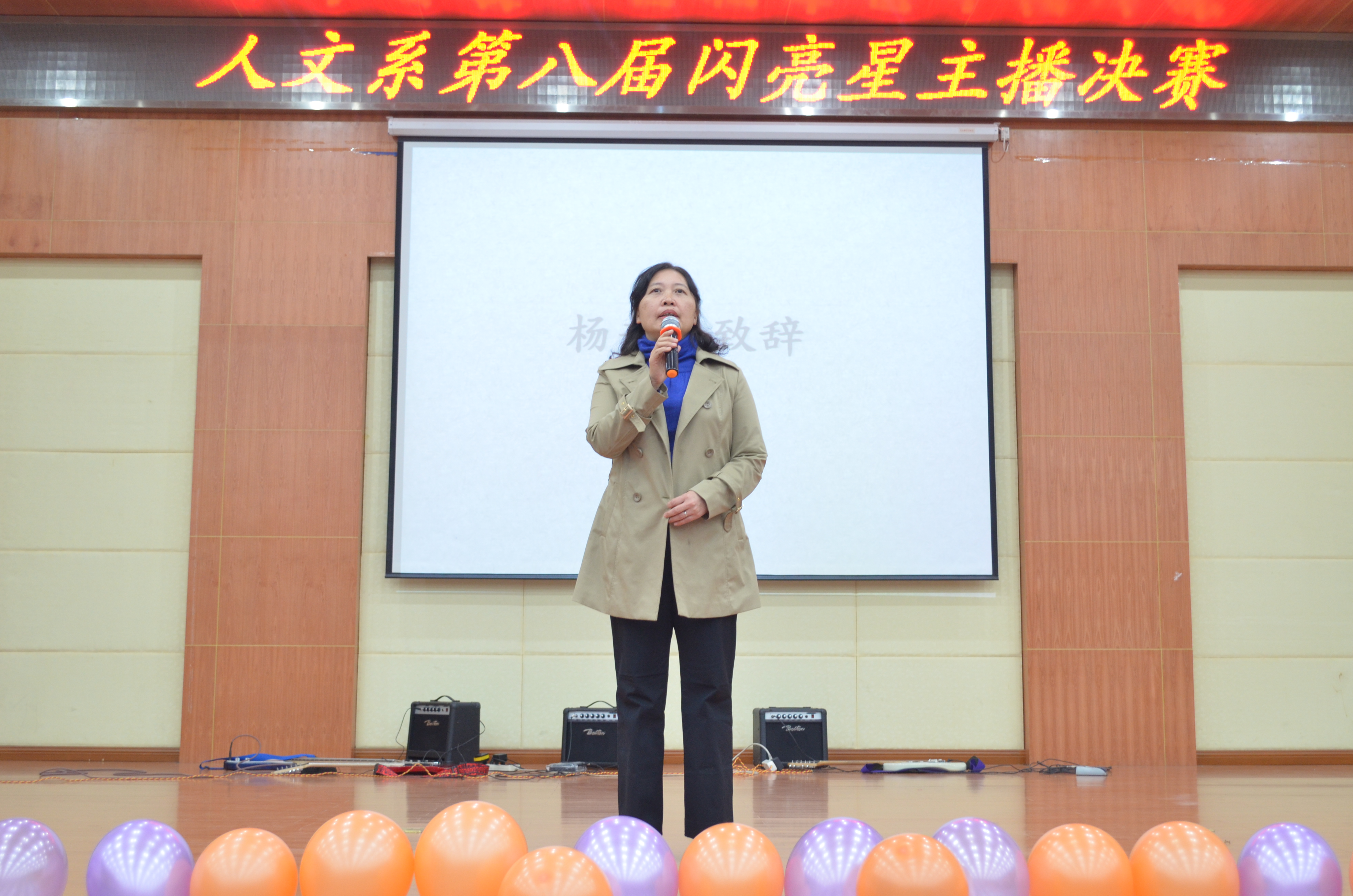 晚7时许,比赛在我系艺术团舞蹈队充满活力的开场舞中拉开了帷幕。系书记杨旭代表系领导致辞。杨书记说,随着人文系与其他系部联系的加强,“学生活动学生做”的理念得到落实,闪亮星主播比赛也愈加成熟。她希望今晚的参赛选手们能发挥出自己的最佳水平,并预祝本次比赛圆满成功。