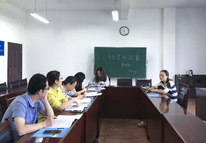 我系资助工作负责老师汪琼对学院资助中心下发的文件进行了详细说明,并就资助政策上墙、上网,宣传全覆盖工作进行了安排,提醒每个辅导员老师在平时的工作中要做好家庭贫困学生的摸排了解,对有生源地贷款的学生做好政策引导和宣传,对获得国家奖学金、国家助学金、国家励志奖学金、学院奖学金的同学进行奖学金、助学金使用说明,同时对此类同学也要做好知恩、感恩教育,望能成长成才,投身社会,建功立业,回馈社会。