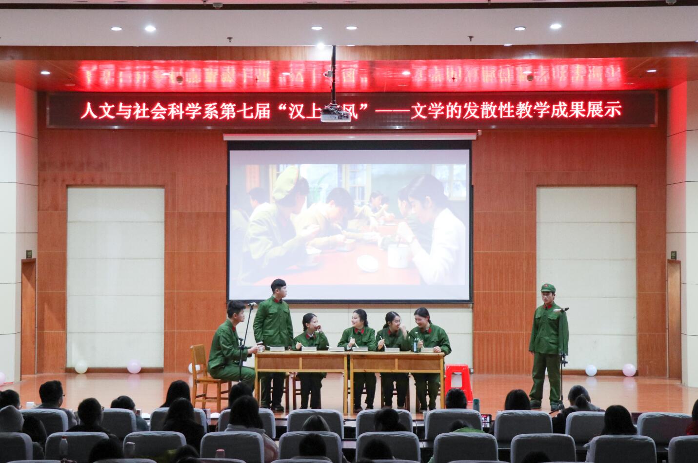 活动指导老师任秀霞介绍,“汉上文风”是该系汉语言专业学子每年与文学的一场约定,在“汉上文风”的舞台上,学生们自编自演自导与文学的故事,七年来,有学生成功出版了自己的书刊,有学生赴泰国从教,有学生能背熟3万字论语等,已经形成了汉语言专业教学的特色品牌。