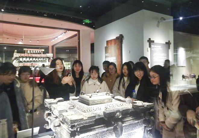 在辗转不同的景区之间时,旅游管理专业的同学,积极向大家普及景区的文化常识,带动所有人的氛围。早上在古琴台,聆听千年的高山流水,感悟子期伯牙的深厚友谊;在千年黄鹤楼,欣赏历代黄鹤楼的风貌,默念着与黄鹤楼有关的诗句,还登楼远眺这荆楚大地,龟蛇大江。中午我们一行人稍作休息,便匆匆赶往下一个地方湖北省博物馆。在那里,导游与我们讲解曾侯乙墓的编钟,以及元青花瓷,越王勾践剑等众多文物。最后还自行参观了其他的文物展览,整整一天的行程,同学们虽有些疲惫,却始终洋溢着笑容,都有不少的收获。