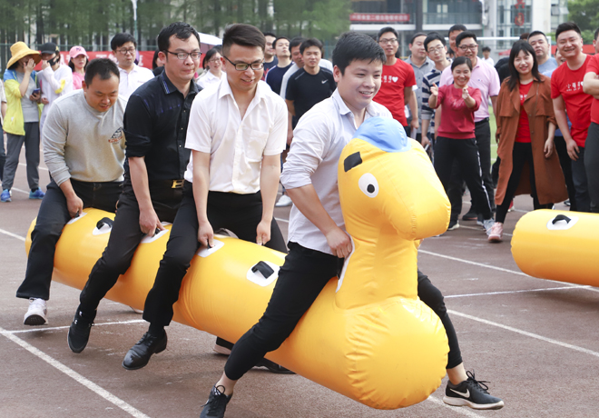 期间,学校教职工还开展了趣味运动会,趣味运动会共设置了“红心大战”“地滚球击弹”“趣味飞镖”“小马过河”“乌龟托球跑”“同心协力”“鼎力相助”等项目,校党委书记彭德忠、校长卜诗桢等校领导及各职能部门负责人带头参加。四月的知行,风和日丽,云淡风轻,教职工们精神抖擞,充分发扬顽强拼搏、团结合作的精神,此起彼伏的掌声和欢呼声充满整个运动场。趣味运动会以其趣味性、娱乐性和广泛参与性,一直受到广大教职工的喜爱,也是学校营造健康向上的校园文化氛围和增强教职工凝聚力,构建和谐校园的重要举措。