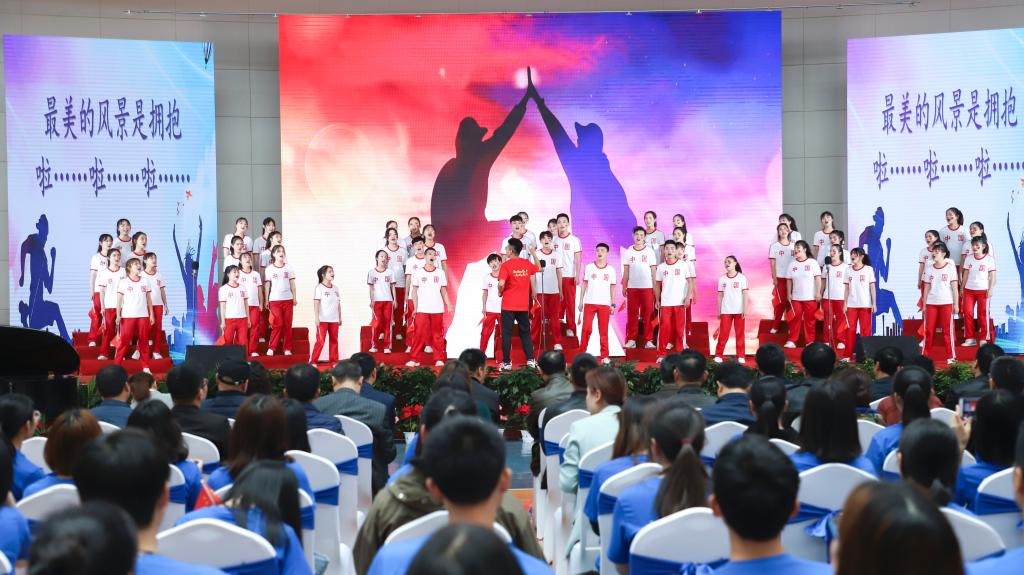 本网讯 高举团旗跟党走,青春建功新时代。4月29日下午,湖北大学知行学院纪念五四运动100周年表彰大会暨第十三届“五月的鲜花”合唱音乐会在体育馆隆重举行。校领导彭德忠、卜诗桢、焦新曦、高志宏、陈刚、黄智凌、王文凯、陈恵、刘张虎和各单位主要负责人、青年教师代表、学生代表1000余人参加活动。校团委书记陈欣主持表彰大会。