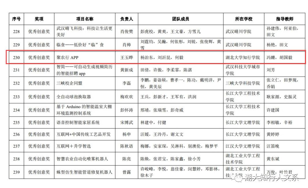 本网讯(通讯员 冯馨晨)为更好激发大学生的创新思维、创造活力,近日,由省教育基金会举办的湖北省第二届“我梦见—楚天创客大赛”圆满落下帷幕。由我院冯姗、胡国毅两位老师指导,王玉晔、杨治冻、刘沂昆、何毅同学负责的“聚农行APP”项目在本次大赛中荣获优秀创意奖,创新了我院在此项大赛中的历史记录。