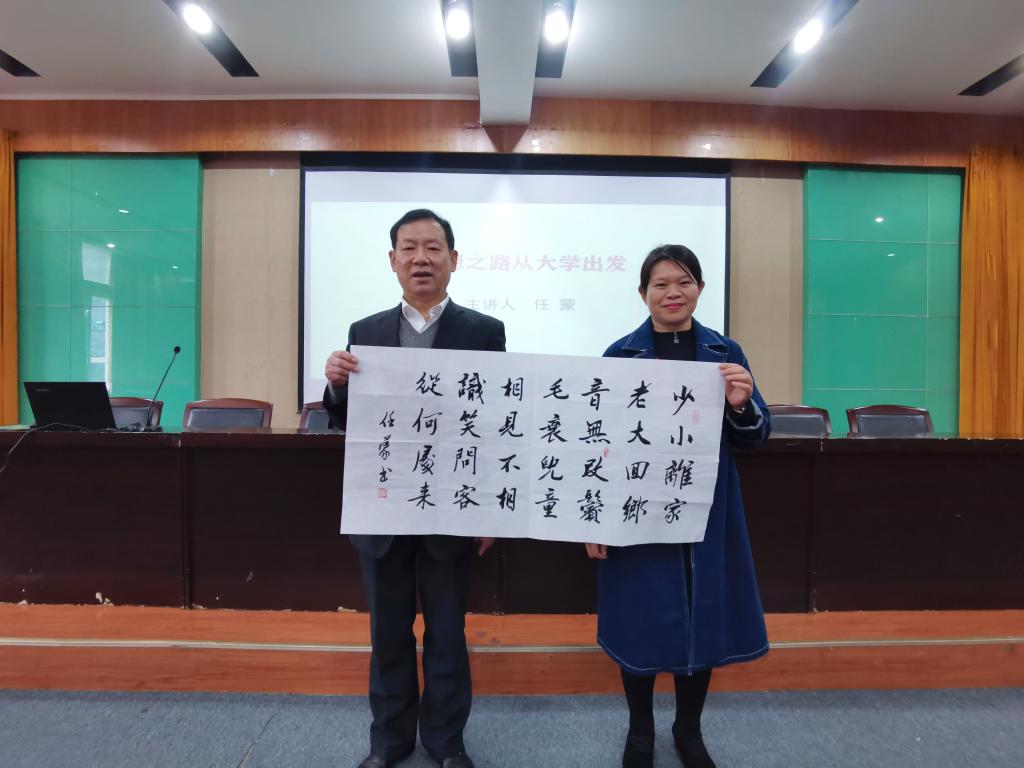 “大学是人生一个新的开端,我们要告别所谓的‘名校意识’”,任教授勉励在场同学,学历不等于能力,无论同学们进入哪个大学学习,关键还是靠自己的奋斗努力,才能为实现自己的人生理想打牢基础。任教授还告诫同学们,在当今信息爆炸、社会发展迅速的年代,不但要完成好学校规定的各项学业,同时要培养我们的参与意识,学会在独立思考中强化我们的创造意识,努力争做有社会担当的知识分子。任教授表示,青春是用来奋斗的,新时代大学生要珍惜美好的在校青春时光,培养严谨认真的学风和人生品格,养成勤劳节俭的生活品德,将个人理想与国家的发展需要结合起来,做合格的新时代社会主义建设者和接班人。
