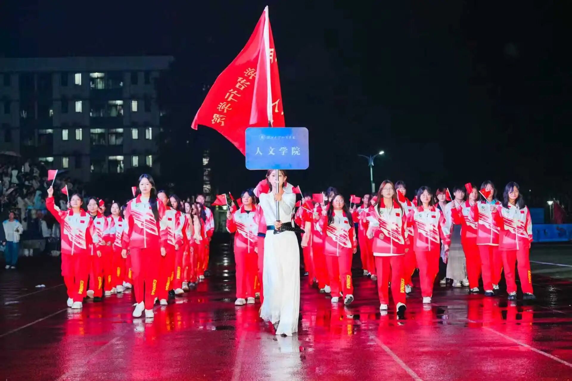 开幕式上,我院运动员方阵精神抖擞,展现了知行人文学子昂扬向上的精神风貌。全场师生迎国旗、奏唱国歌,庄严的仪式激荡起强烈的爱国热情,凝聚起奋进的磅礴力量。