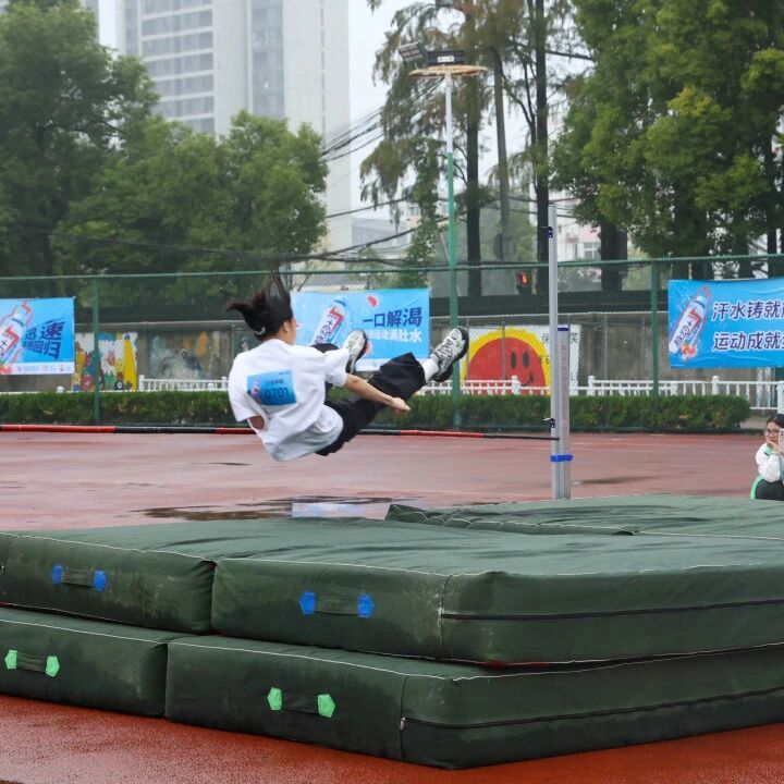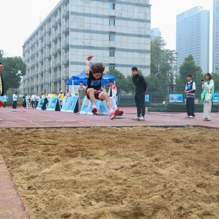 田径赛场同样精彩纷呈:我院跳高选手助跑如风、腾空过杆,轻盈身姿划出优美弧线;跳远健儿蓄力加速、纵身飞跃,在沙坑中烙印下奋力一跃的印记;铅球赛场,选手凝神聚力、全力一掷,铅球划破长空,每一次投掷都迸发出力量与决心。