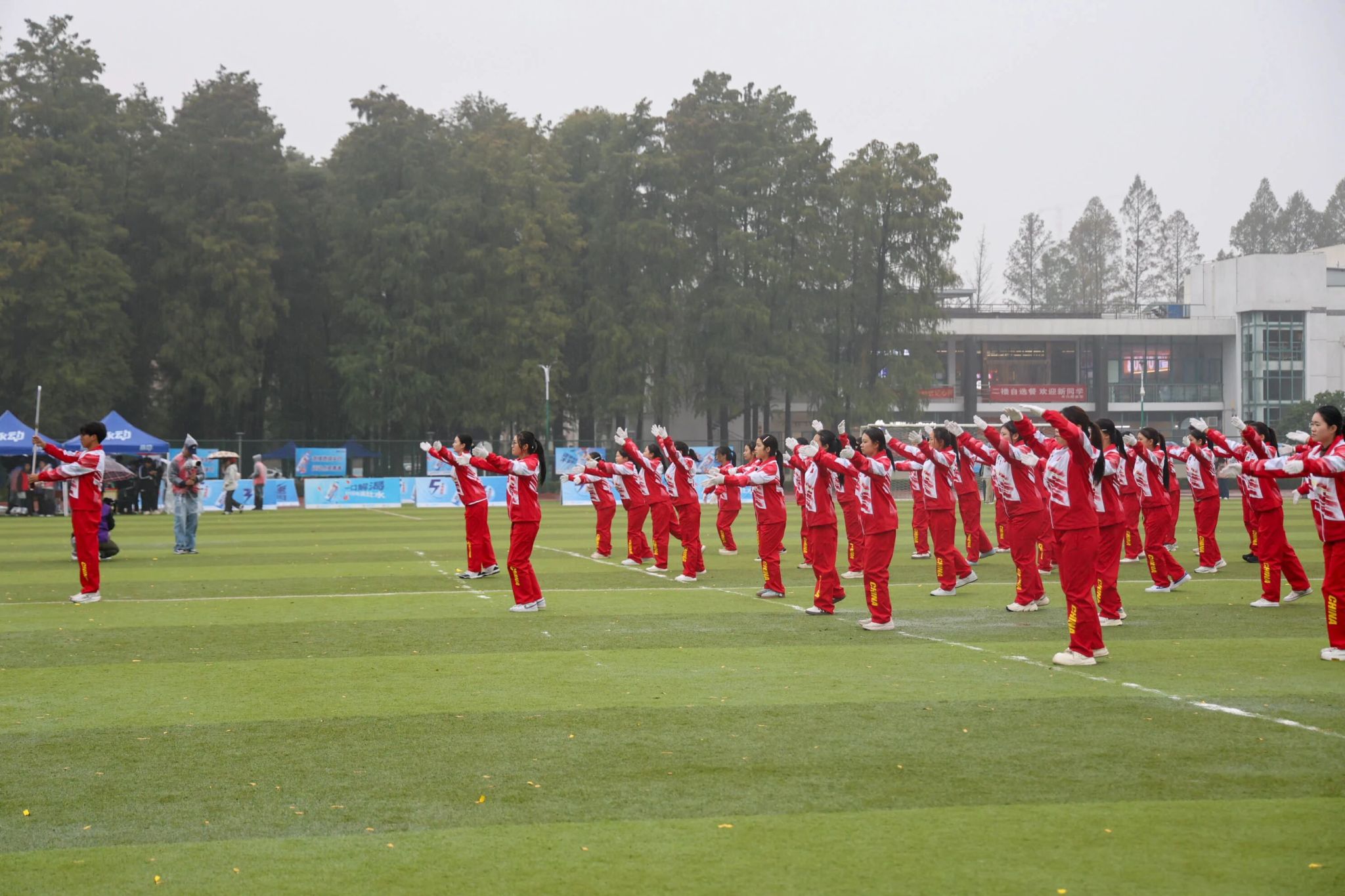 7日下午,广播体操比赛成为赛场又一亮点。我院参赛学生身着统一服装,气势昂扬,动作整齐划一,从入场到退场井然有序,举手投足间展现出高度的团队精神和蓬勃向上的青春风貌,赢得了现场师生阵阵掌声与喝彩,成为运动会中一道亮丽的风景线。