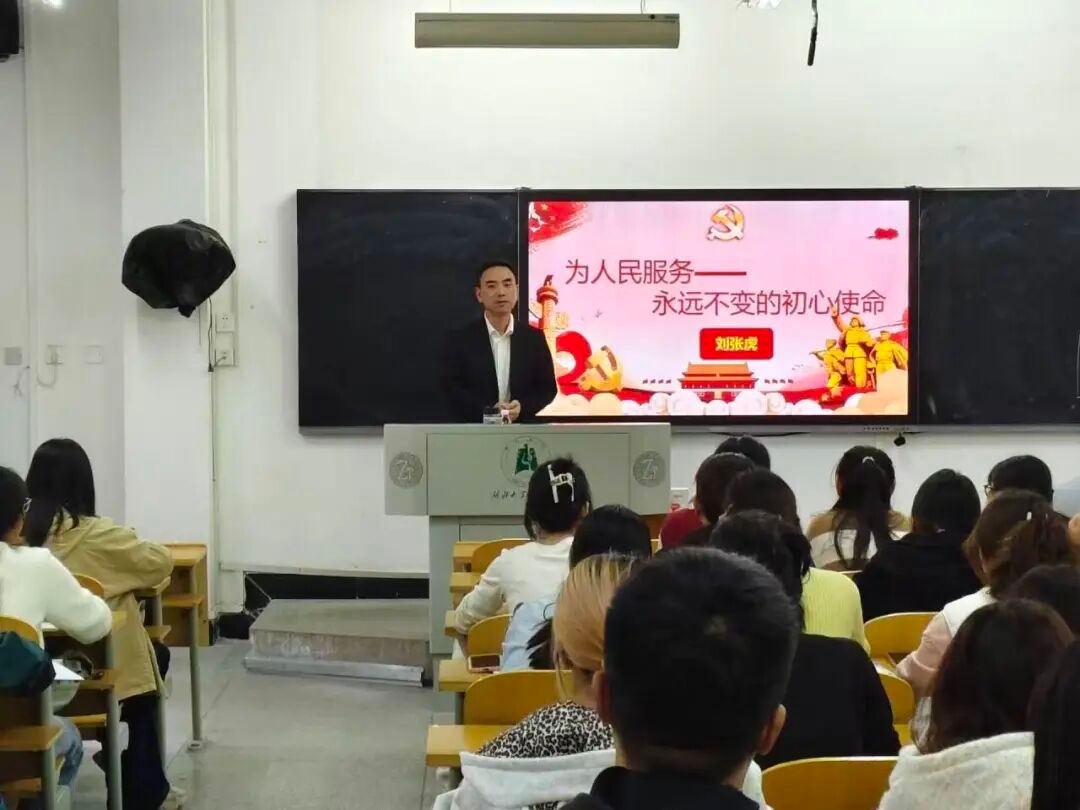 本网讯(人文学院学生党支部)近日,湖北大学知行学院第三次集中校党课在知真楼206举行。副校长刘张虎以“为人民服务——永远不变的初心使命”为主题,为入党积极分子带来一场兼具历史厚度与现实指导意义的专题授课。
